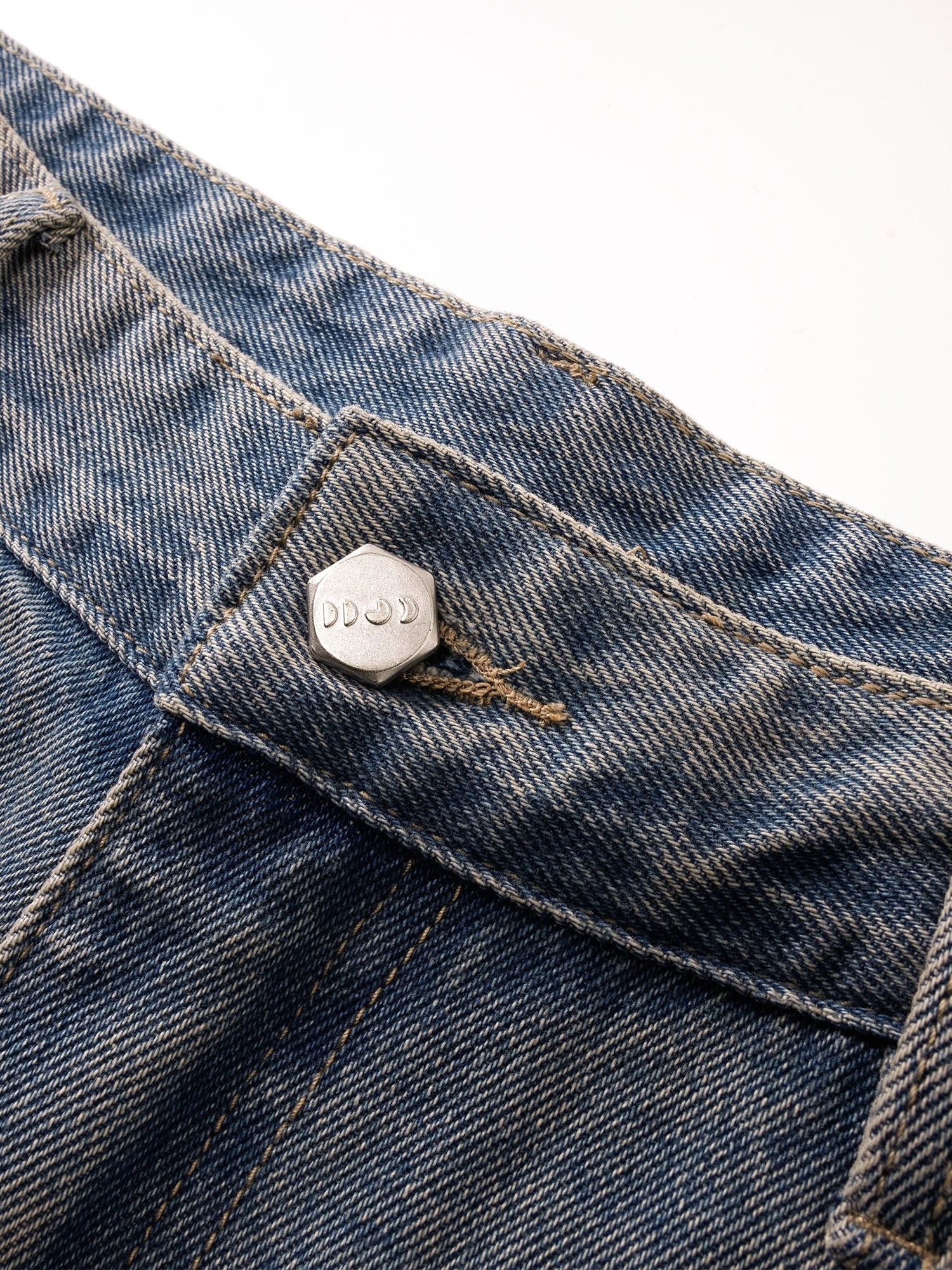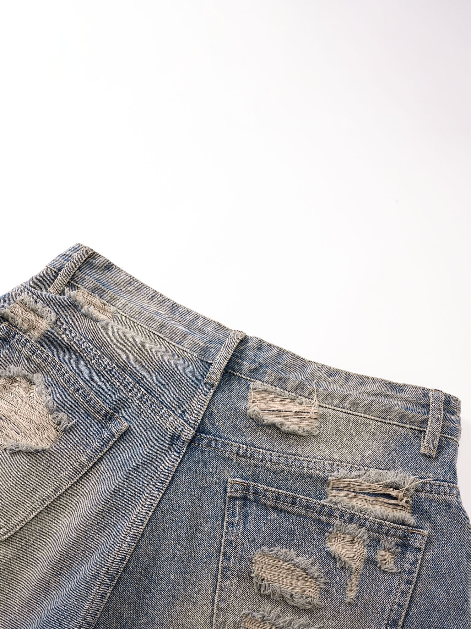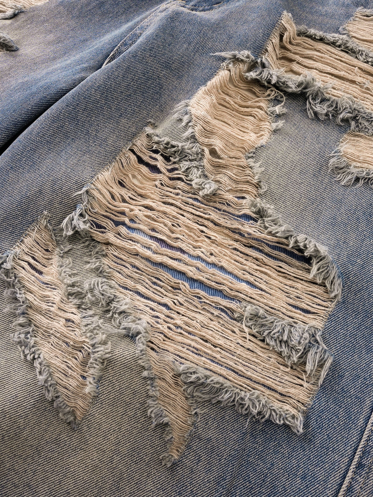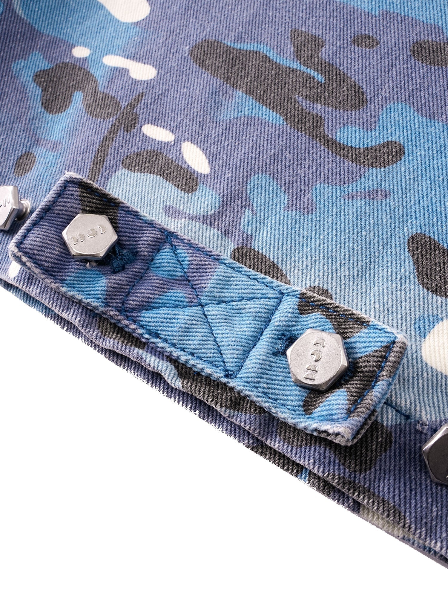 ECLIPSE OF THE BLOOD MOON DISTRESSED DENIM BLUE CAMOUFLAGE LAYERED PANTS