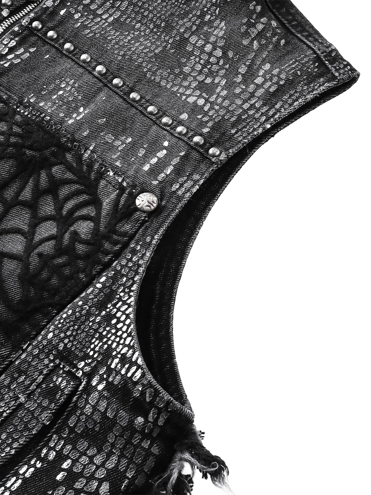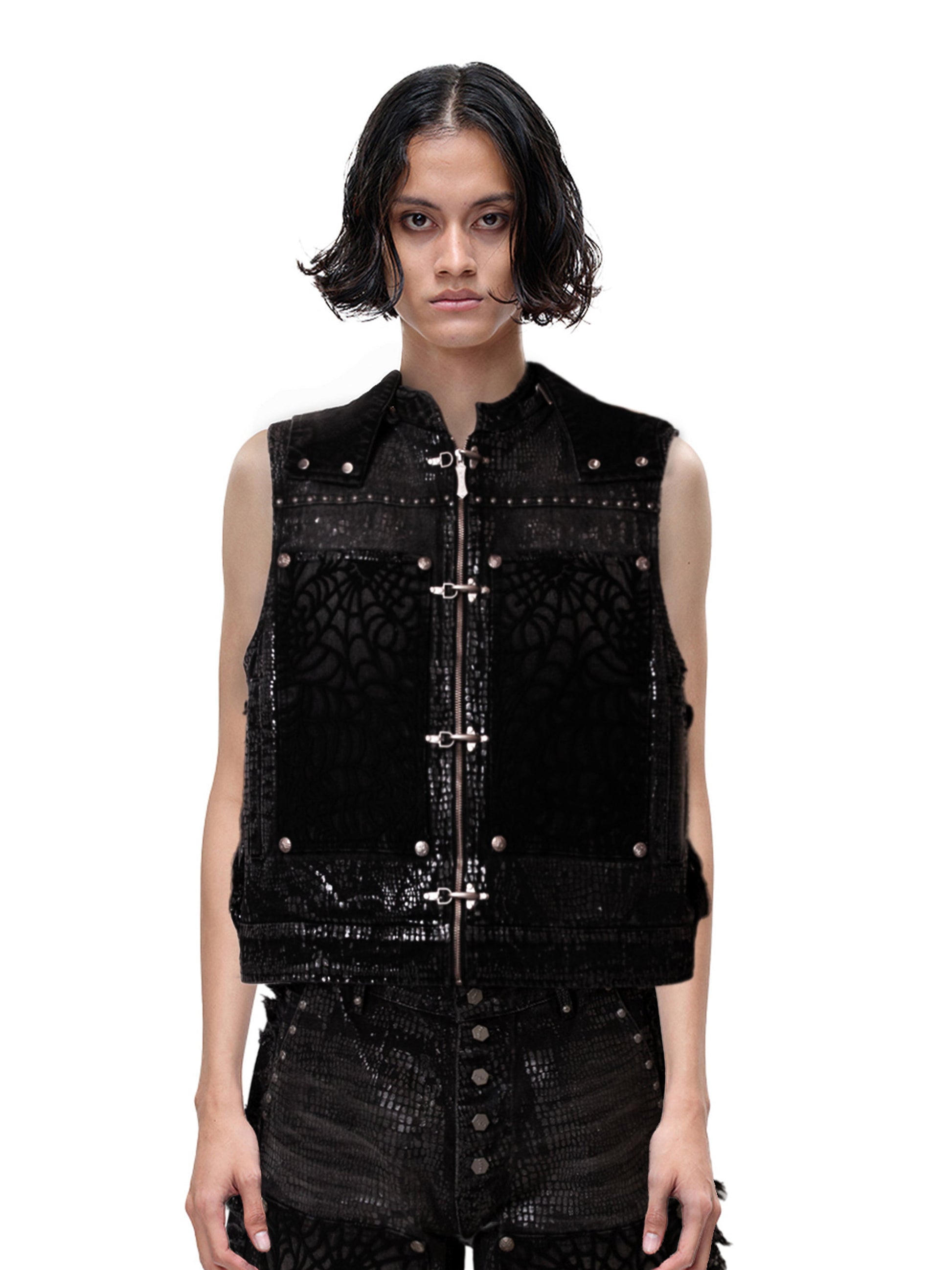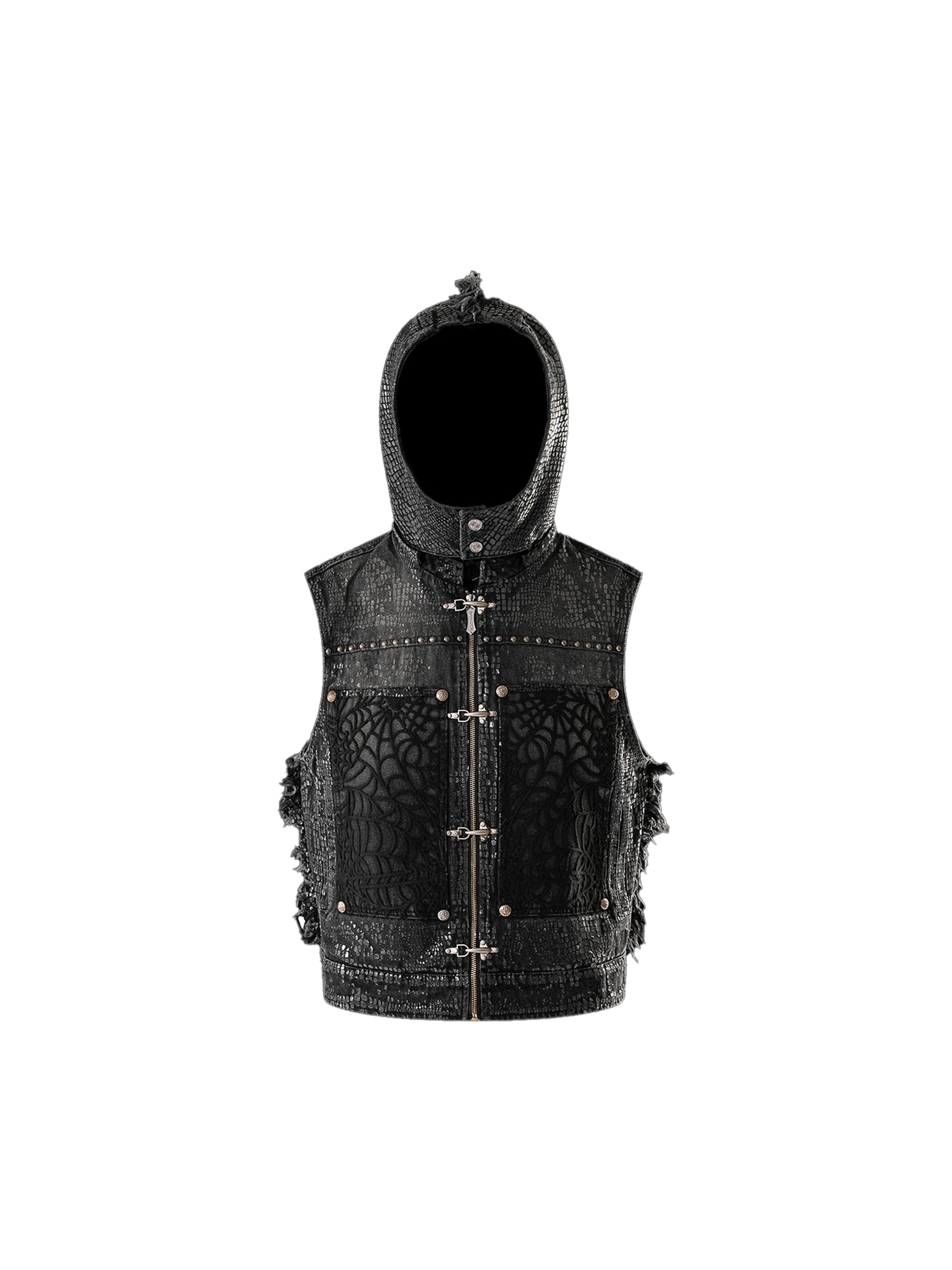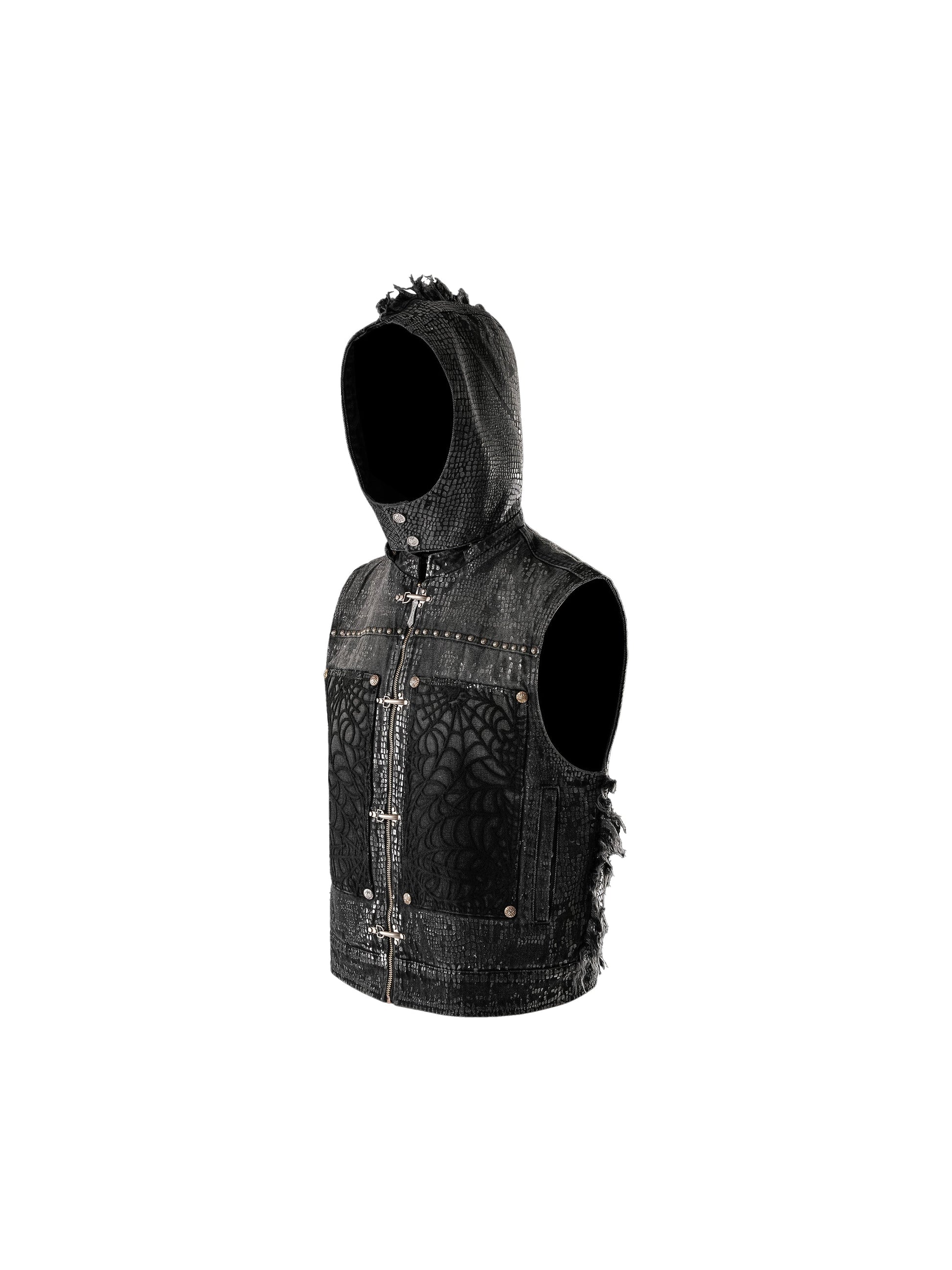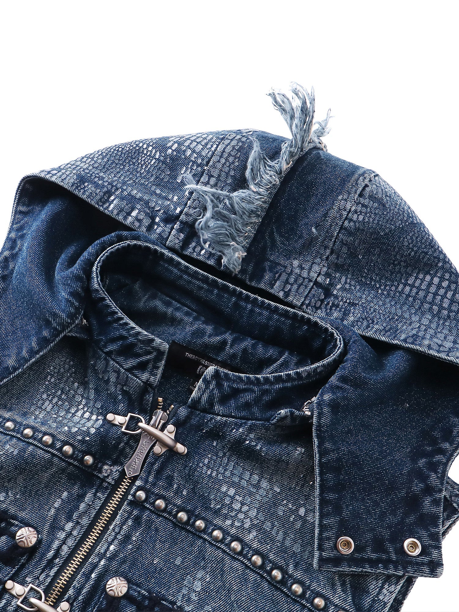 LUMINOUS DAWN FRINGED DENIM HOODEDVEST