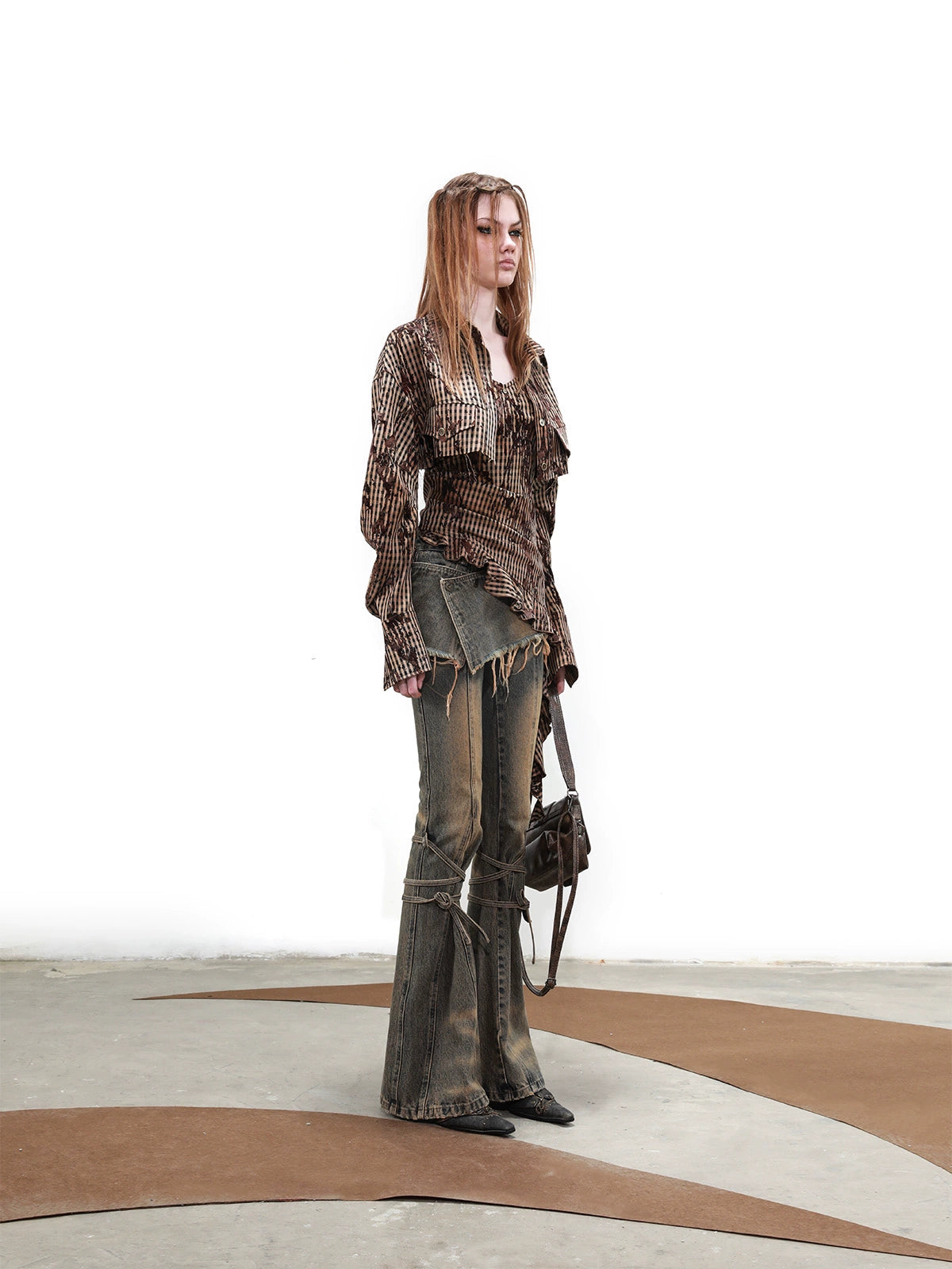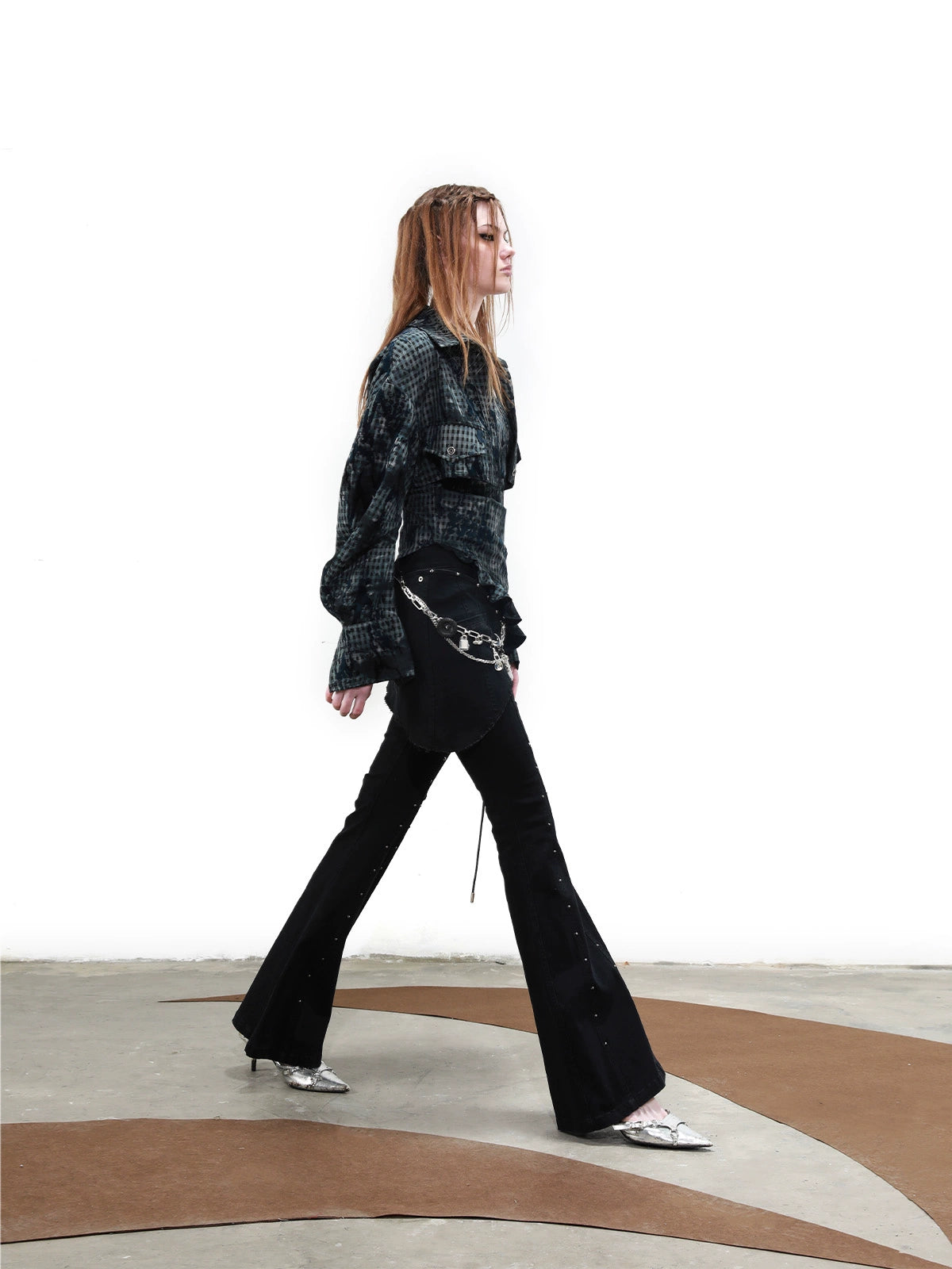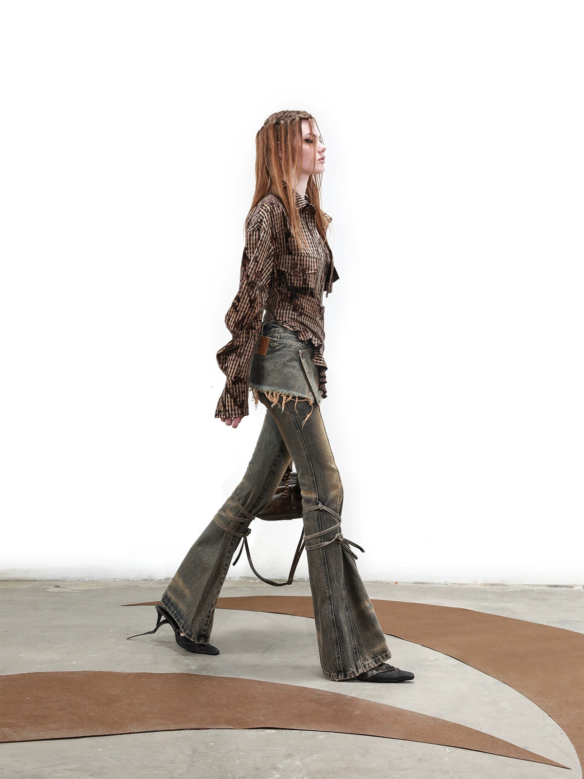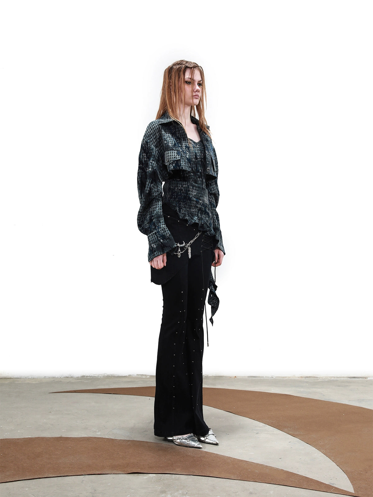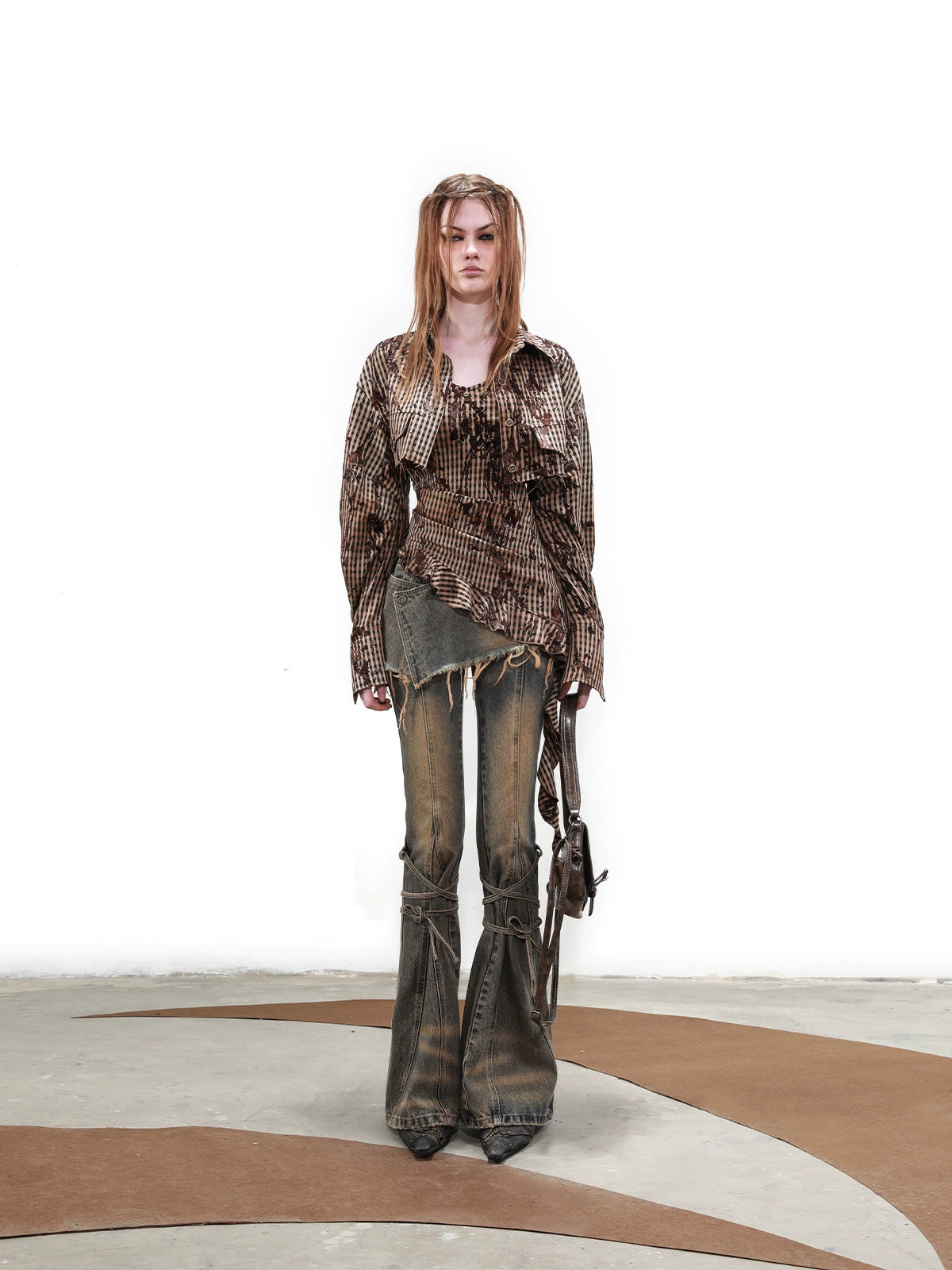 This plaid set combines a tailored coat and matching skirt, both accented with soft velour detailing for a touch of luxury. Perfect for layering, it balances classic patterns with a modern, cool edge to elevate your outfit effortlessly.
