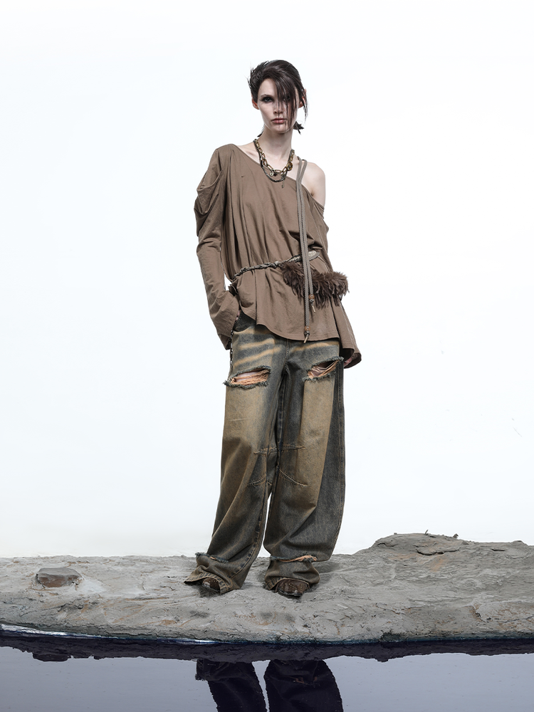 BAGGY FADE WASH RIPPED JEANS